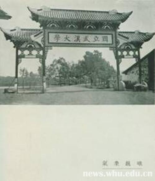 “国立武汉大学”六个字最早出现在20世纪30年代的武昌街道口的木牌坊上。1928年学校正式定名为国立武汉大学,李四光、叶雅各等人择定武昌郊外的珞珈山一带作为新校址。